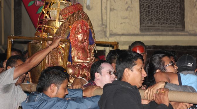 यें दक्षिणपाखे टेकु दोभानय् च्वंम्ह पचलि भैरवया जात्रा नवरात्रीया न्यान्हुया न्हिकुन्हु पचिमह्रः जात्रा कथं हनावयाच्वंगु दु । पचलि भैरवयात पंचदीमण्डल, पञ्चलिंगेश्वर, पञ्चमुखी लिंगेश्वर, पञ्चदिपचार, पञ्चहिमण्डल, आजुद्यः आदि नं धाः । अथे हे पचलि भैरवयात महाद्यःया रुपय् नं कायेगु याः । हिन्दुतय्सं पञ्चलिंगेश्वर महाद्यः व बौद्ध मान्यताकथं श्री स्वच्छन्द भैरवकथं हनातःगु दु । न्हापा चायाः त्यपय् भैरवया ख्वाःपाः दुगु त्यप जात्रा याइगु यानाच्वंगु खःसां लिपा शिवसिंह मल्लया पालय् लीयागु त्यप दयेकाः जात्रायाःगु खः । त्यपजात्रा वा पचलि भैरवया जात्रा यायेबलय् उगु त्यपयात गुथियारया लिसें भक्तजनपिंसं ब्वहलय् कुबियाः छचाःखेरं ल्हातं ज्वनाः जात्रा याइगु खः । लिपा थीथी इलय् जुजुपिंसं त्यपद्यःया न्हूधाः यायेगु झ्वलय् वि.सं २०७३ सालय् पुलांम्ह जुजुु ज्ञानेन्द्र शाहं त्यपया न्हूधाः याःगु खः । उगु हे इलय् त्यपयात चिधंगु खः थें कुबिइजिइक दयेकूगु खः ।