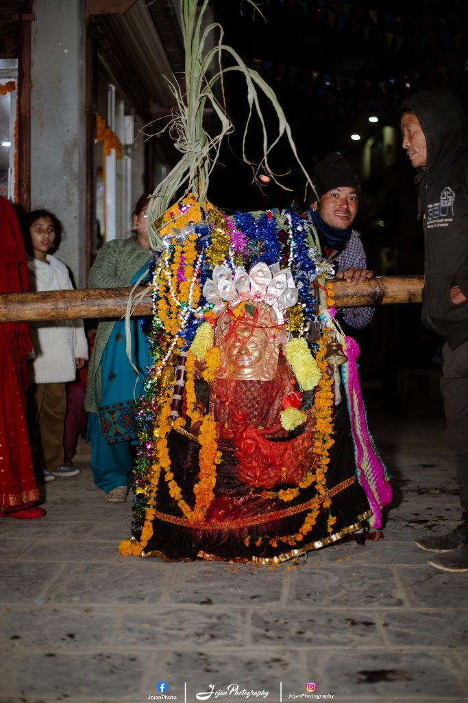 येँया तिंख्यलय् धातुया प्यागोडा शैलीया स्वतँजाःगु देगलय् मांकाःद्यः पूर्व स्वयाः बिज्यानाच्वंगु दु । थ्यंमथ्यं न्हय्गू फिट तःधिकःम्ह ल्वहंयाम्ह हाकु ख्वाःम्ह मांकाःद्यः
