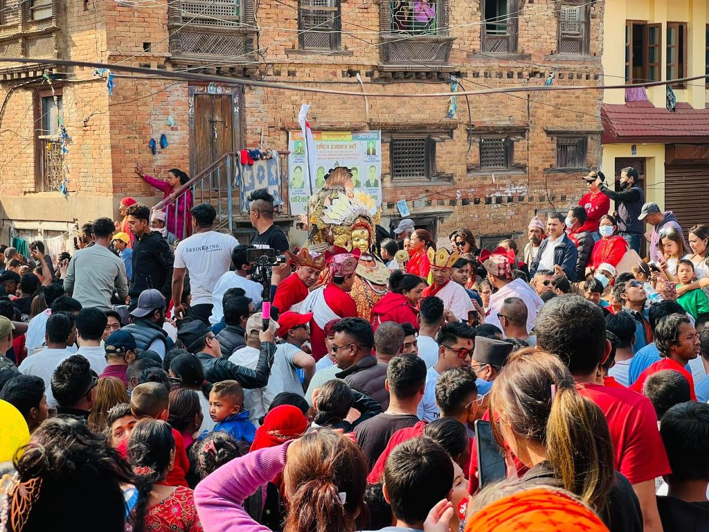 देय्या मू जात्रा खः । थथे देय्न्यंक जानकारी बीगु ज्या सक्वया थकालिम्ह नायलं याइ । न्हापा वं थथे जानकारी ब्यू वनीबलय् निम्ह माहांत नं वयाः जवंखवं च्वनाः सुरक्षा बीत वनीगु खः ।