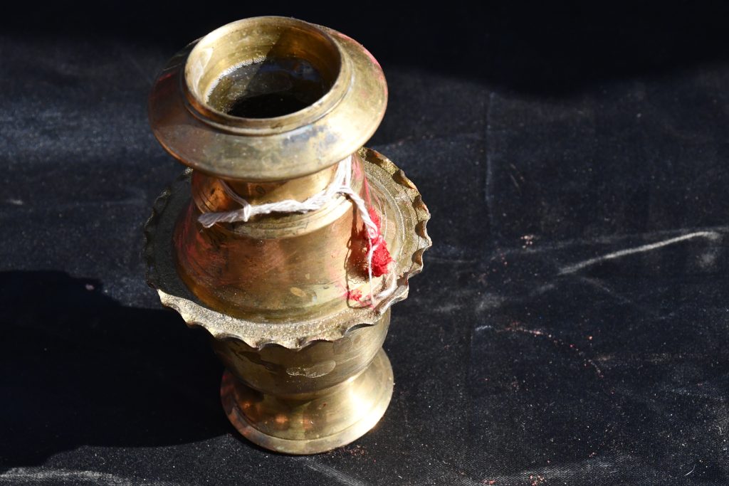 पुजा यायेगु झ्वलय् शिवलिङ्गय् लः हायेकेगुया निंतिं जलहरी छ्यलेगु याइ । थुकी लः लिसें दुरु, घ्यः, कस्ति नं तयाः महाद्यःयात द्यछायेगु याइ । थ्व थल सिजःया दयेकी । गुलिं जलहरी त्रिखुट्टीया व्यवस्था यानातःगु दइसा गुलिखे खायेगुकथं सिखः वा खिपःया प्रयोग नं जुइ । थ्व थल स्वयेबलय् च्वामुबाताया चिग्वःगु स्वरुप थें नं च्वनी । थ्व थलया म्हुतुप्वाः खुल्ला जुइसा क्वय्पाखे बुलुहुं च्वामु जुजुं प्यंचाःपाखे पुरा हे च्वामुया वनी । क्वय्या ब्वय् चिचाप्वाःगु ह्वः छगू तयाः लः, दुरुलिसेंया पदार्थ शिवलिङ्गय् हायेकेत ज्याछिंका तइ । थ्व थल दयेकेत पातायात साइजकथं ग्वलाक चानाः ल्हुइगु याइ । म्हुतुया ब्व खुल्ला जुइसा प्यंचाःपाखें च्वामुसे यानायंकी । त्रिखुट्टी दयेकेत तार अथवा पातायात जलहरीया साइज कथं ताहाकः जुइक चानाः ग्वलाक लिसं तयाः स्वाइ । उगु ग्वलाःगु चक्कायात स्वंगू ब्व यानाः छपु छपु तुतिया रुपय् स्वायेगु याइ ।